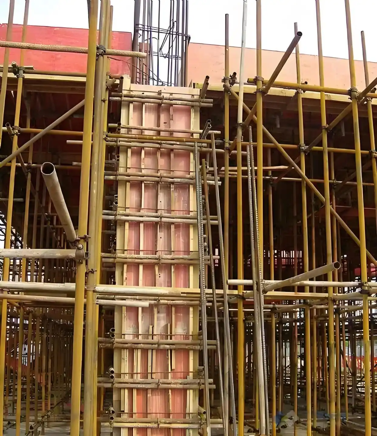 發表時間:2025-12-19 11:17 一、滿堂紅腳手架核心搭設參數詳解 滿堂紅腳手架作為建筑施工中常用的支撐體系,其搭設參數直接關系到整體結構的穩定性與安全性。 1. 立桿間距(臺距): 立桿橫向與縱向間距(臺距)需控制在≤900mm。該參數是確保腳手架承載均勻性的基礎,間距過大會導致局部荷載集中,增加架體變形風險。實際施工中,可通過激光放線定位確保間距精準,避免因人工測量誤差導致的受力不均。 2. 步距與掃地桿設置: - 步距:立桿縱向水平桿(順水桿)的垂直間距宜為1.5m左右。合理的步距可平衡施工操作空間與架體剛度,過高會削弱立桿抗側移能力,過低則影響材料周轉率。 - 掃地桿:首層立桿距地面高度需≤200mm,通過縱橫向掃地桿將荷載均勻傳遞至基礎,防止立桿底部懸空導致的整體失穩。 3. 立桿自由端控制: 頂層立桿伸出水平桿的自由端長度應≤500mm,且懸臂段嚴禁超過200mm。自由端過長會形成“懸臂杠桿”效應,加劇立桿頂部晃動,尤其在高支模場景中,需通過可調托撐精確控制伸出長度。 二、柱部節點精細化處理要點 柱體部位是滿堂紅腳手架與主體結構連接的關鍵節點,需針對性強化支撐: 1. 柱周加密區搭設: 柱體周邊底部兩步距(垂直高度≤450mm)范圍內,立桿間距需加密至≤500mm。該區域是柱體荷載向架體傳遞的核心區域,加密立桿可減少柱底支撐的應力集中,避免因局部剛度不足導致的混凝土成型偏差。 2. 柱帽端部加長支撐: 在柱帽(柱頂擴大截面)兩端,需增設加長水平桿延伸至非加密區。此舉可將柱帽荷載通過延伸桿件分散至周邊架體,防止因端部支撐缺失導致的架體局部下沉,確保柱體澆筑時的垂直度與平整度。 注:若條件允許,優先采用定型鋼結構柱箍替代傳統腳手架加固,其標準化構件可顯著提升安裝效率與支撐精度。